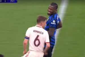 几乎是同一时间,同时开球的拜仁vs国米也处于任意球主罚阶段,最终基米希主罚的任意球被索默轻松没收,随后基米希快速跟防图拉姆的前插,引得后者发笑。